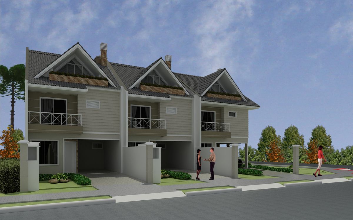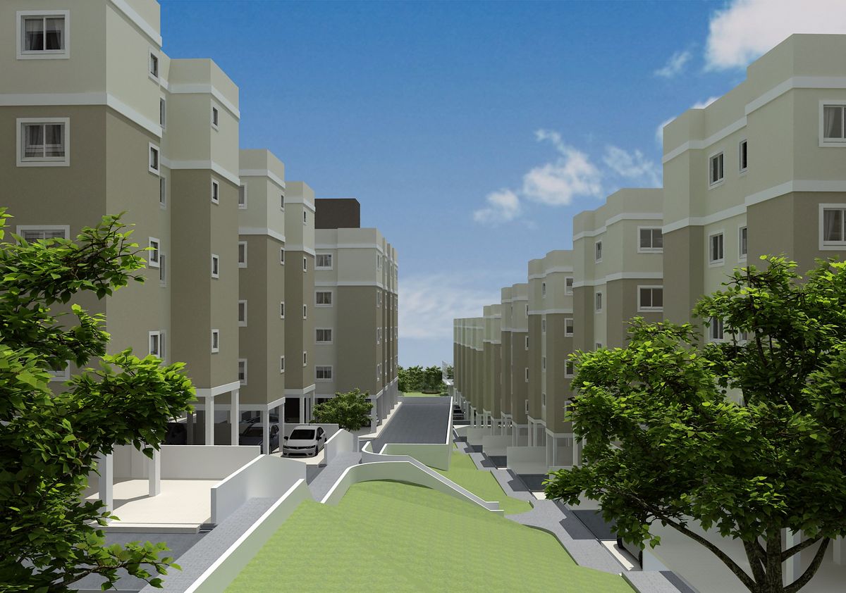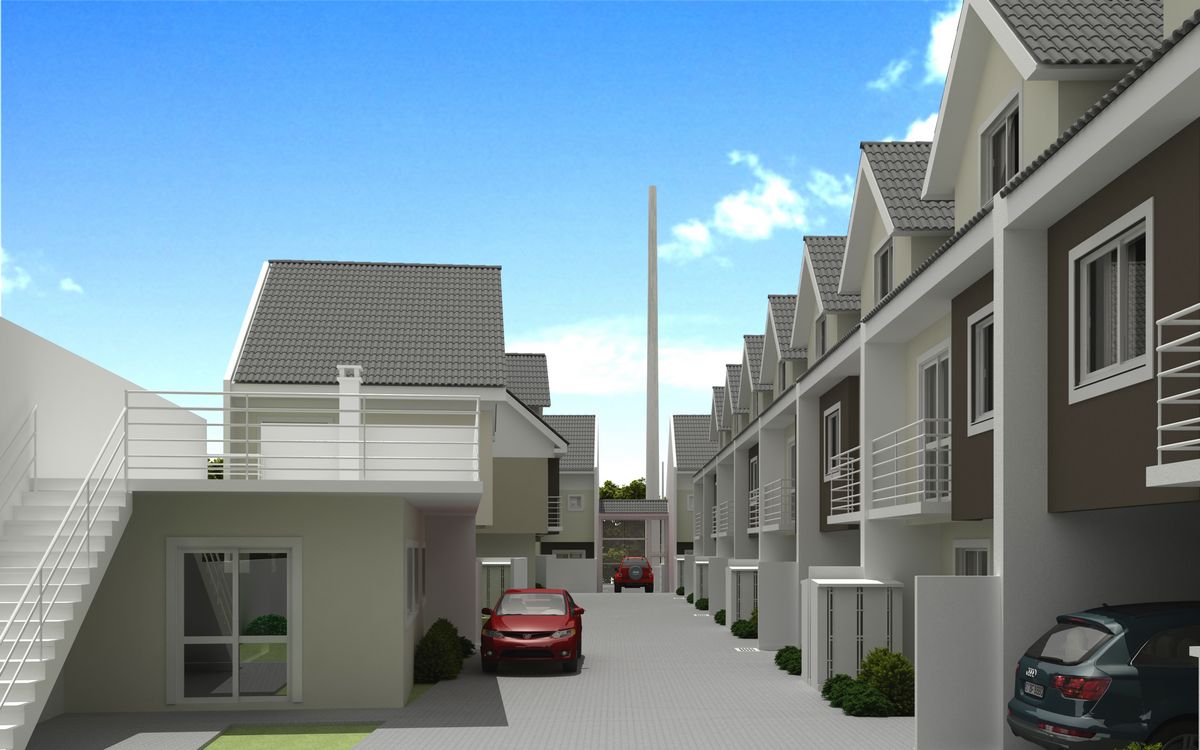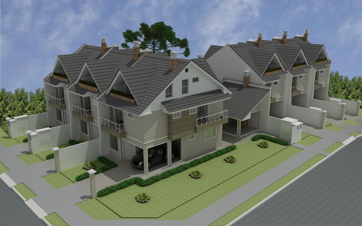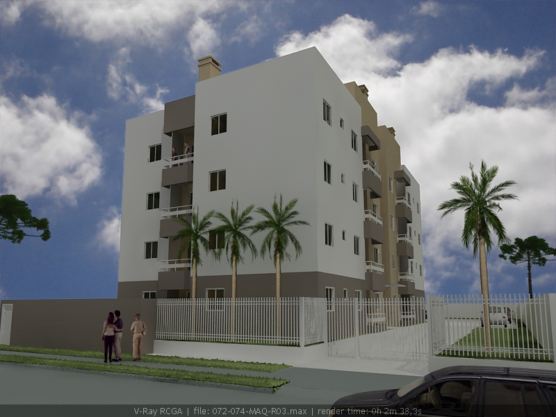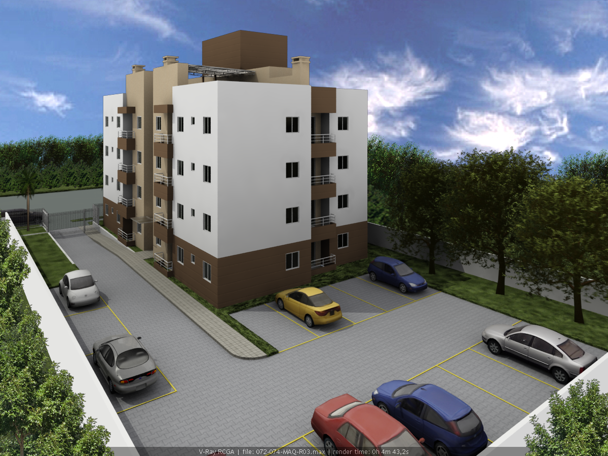 Mas quando há necessidade de perspectivas externas com maior riqueza de detalhes, com qualidade fotográfica, como as que são utilizadas para venda de imóveis, em placas (banners), produção de folhetos de vendas ou divulgação pela internet, fazemos um tratamento especial com aquele modelo 3D vindo do Revit, através do Vray, tendo desta forma, uma imagem com um grande nível de realidade, muito mais próximas de fotos reais das obras.