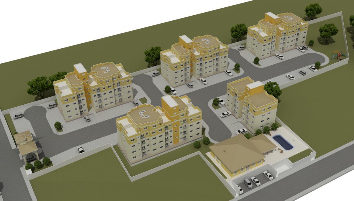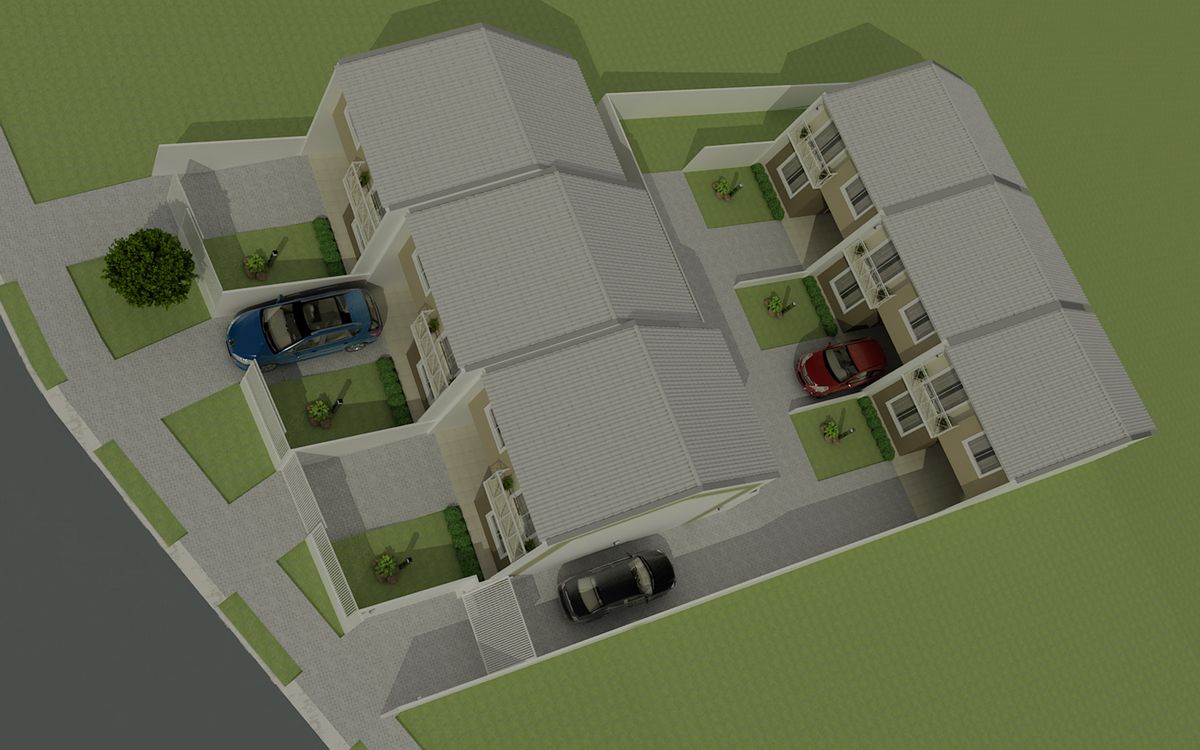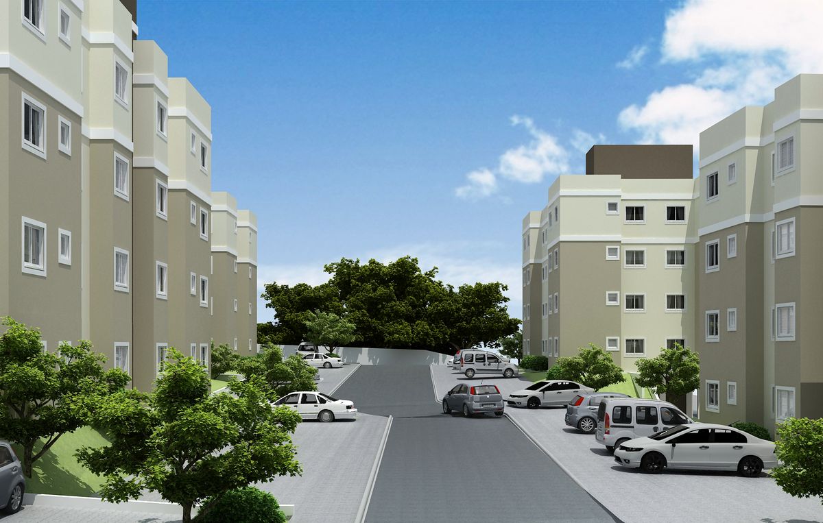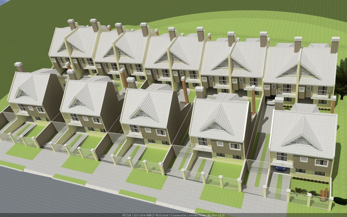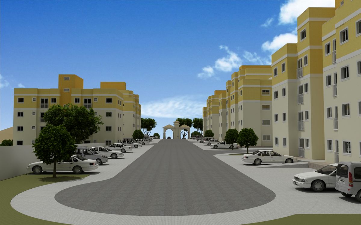Mas quando há necessidade de perspectivas externas com maior riqueza de detalhes, com qualidade fotográfica, como as que são utilizadas para venda de imóveis, em placas (banners), produção de folhetos de vendas ou divulgação pela internet, fazemos um tratamento especial com aquele modelo 3D vindo do Revit, através do Vray, tendo desta forma, uma imagem com um grande nível de realidade, muito mais próximas de fotos reais das obras.