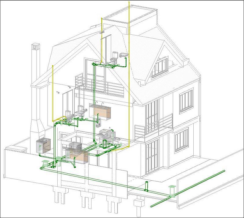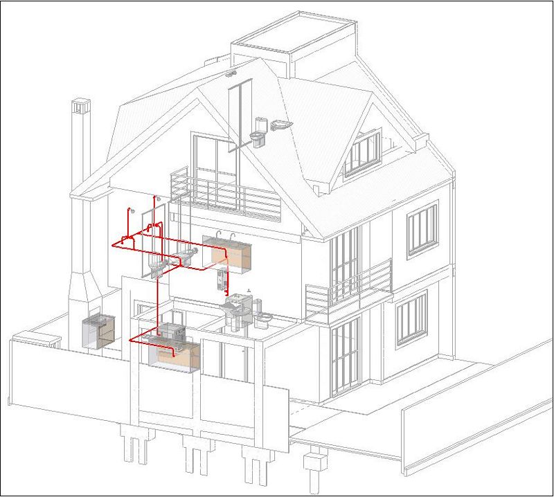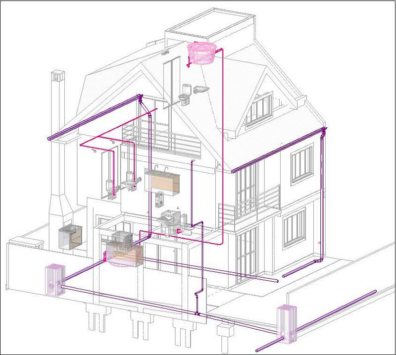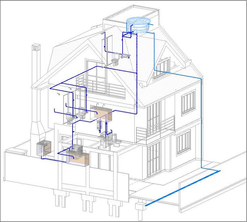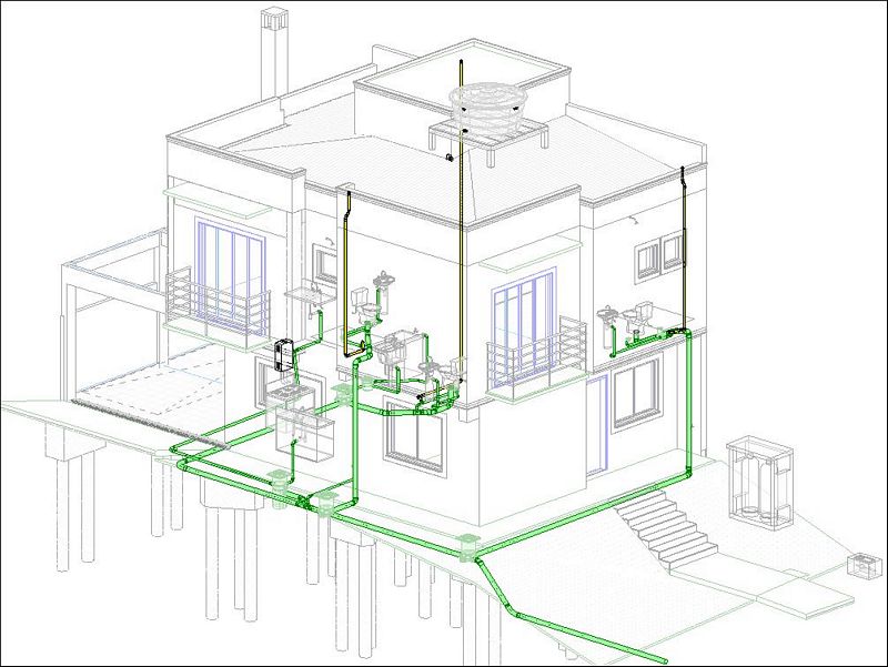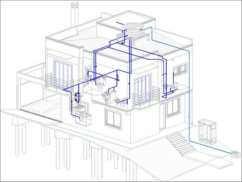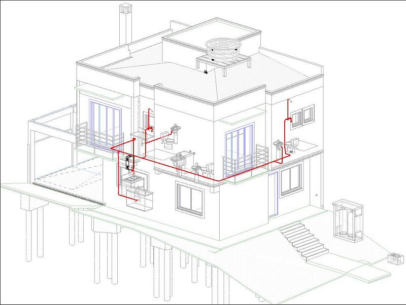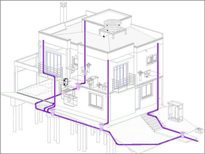 A modelagem é realizada com a inserção do modelo do projeto arquitetônico e dos modelos do projeto estrutural, elétrico e prevenção de incêndio, caso já tenham sido feitos. Desta forma, ao modelar a tubulação e posicionar as peças sanitárias, já o fazemos da melhor forma possível, evitando inteferências na estrutura e/ou arquitetura. Quando estas inferferências são necessárias, estas são feitas visando o menor impacto possível, tanto do ponto de vista estético/arquitetônico, quanto estrutural.